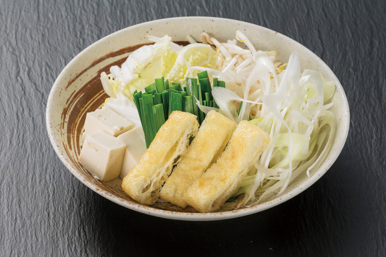 国産牛ホルモン・豚バラ・名古屋コーチン入りつくね・油揚げ・豆富・白菜・もやし・白ネギ・ニラ